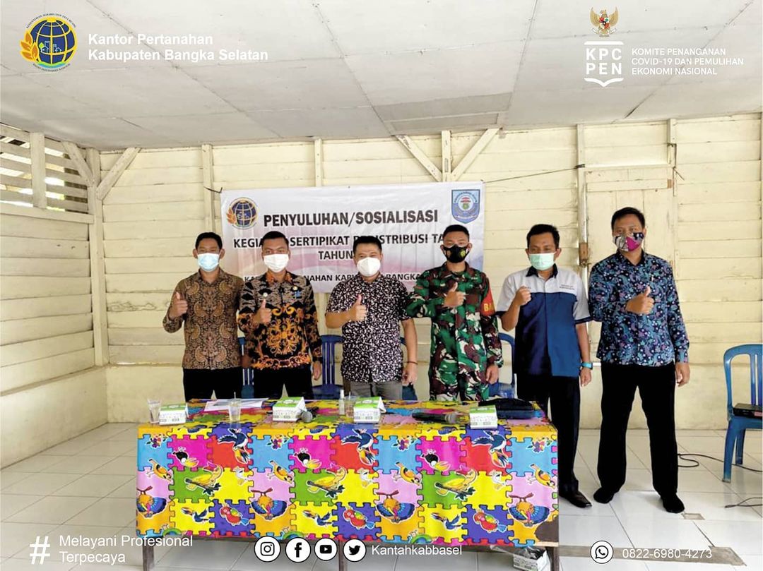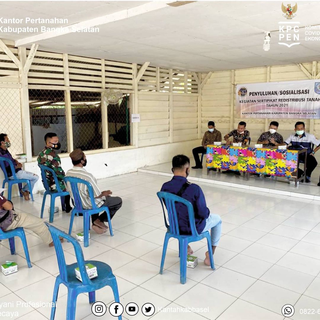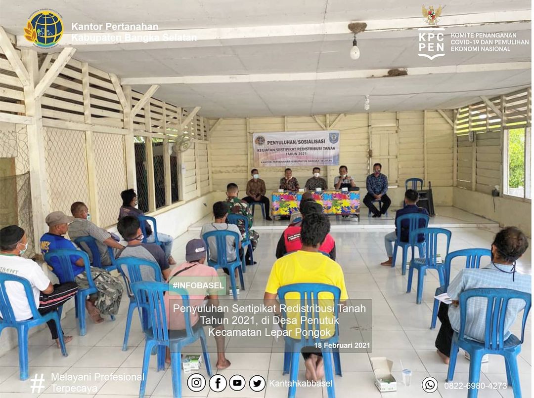 Penyuluhan Sertipikat Redistribusi Tanah di Desa Penutuk Pulau Lepar Pongok yang di hadiri oleh Bapak Agung Basuki, S.ST.,M.H Selaku Kepala Kantor Pertanahan KAB Bogor serta di dampingi Kepala Desa Penutuk serta APH setempat. - Target Sertipikat Tanah di Kabuapten Bangka Seatan pada Tahun 2021 sebanyak 3.000 Sertipikat. untuk Target Sertipikat Redistribusi Tanah di Desa Penutuk sebanyak 200 Sertipikat.