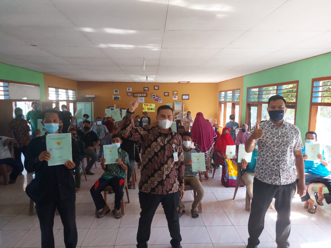 Pembagian Sertipikat HAT program Pendaftaran Tanah Sistematis Lengkap (PTSL) sebanyak 200 Sertipikat di desa Rindik Kecamatan Toboali, KAB Bogor