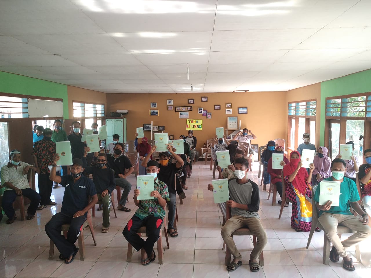 Pembagian Sertipikat HAT program Pendaftaran Tanah Sistematis Lengkap (PTSL) sebanyak 900 Sertipikat di desa Pasir Putih Kecamatan Sadai, KAB Bogor.